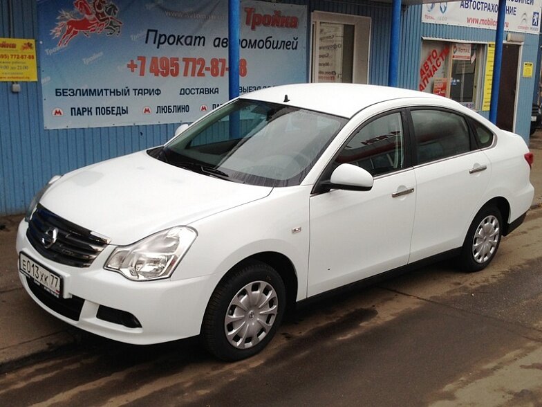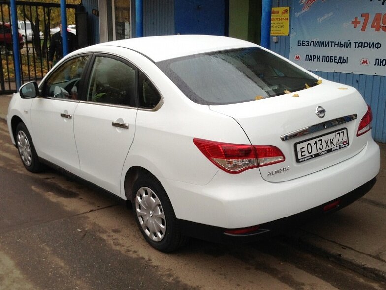 Московская прокатная компания «АрендаАвто-лук» предлагает взять в аренду Nissan Almera IV MT белого цвета с механической коробкой передач по низкой цене.