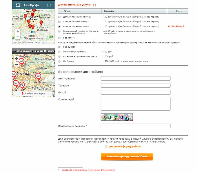 - Вводим контрольные символы и нажимаем «Заказать аренду автомобиля».
